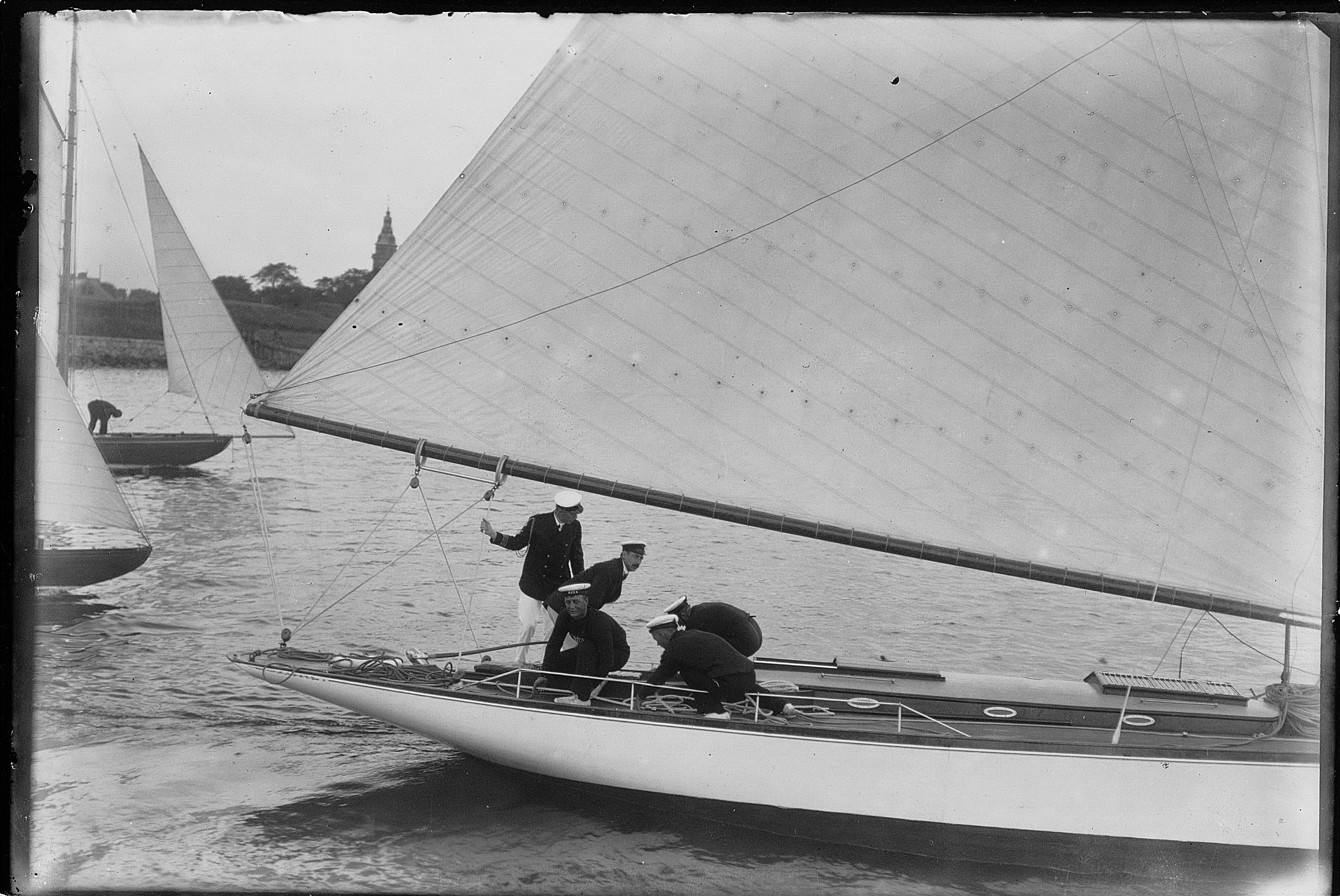 Der er kapsejlads på Øresund og kongeparret følger sejladserne fra land. Dronning Alexandrine og Kong Christian X får sig en snak om kapsejladserne. Årstallet er ca. 1912. De var begge trænede kapsejlere.