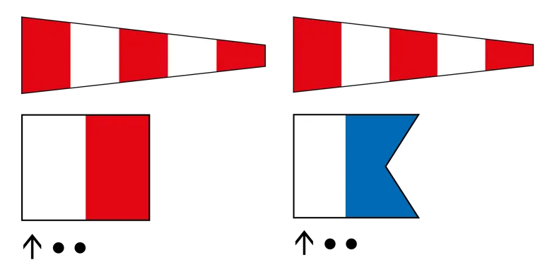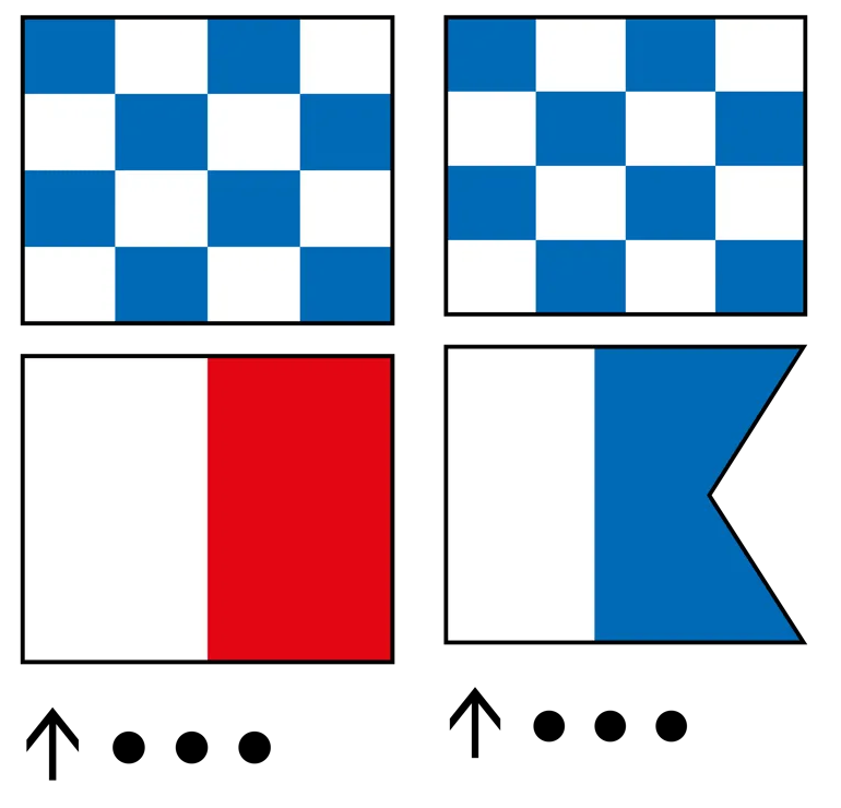 Der skal angives to lydsignaler, når signalflaget/-flagene vises. Når signalflaget AP tages ned, bør dette ske med et lydsignal. Som mærkebåd gør man det ikke. Dette lydsignal gives fra dommerbåden.