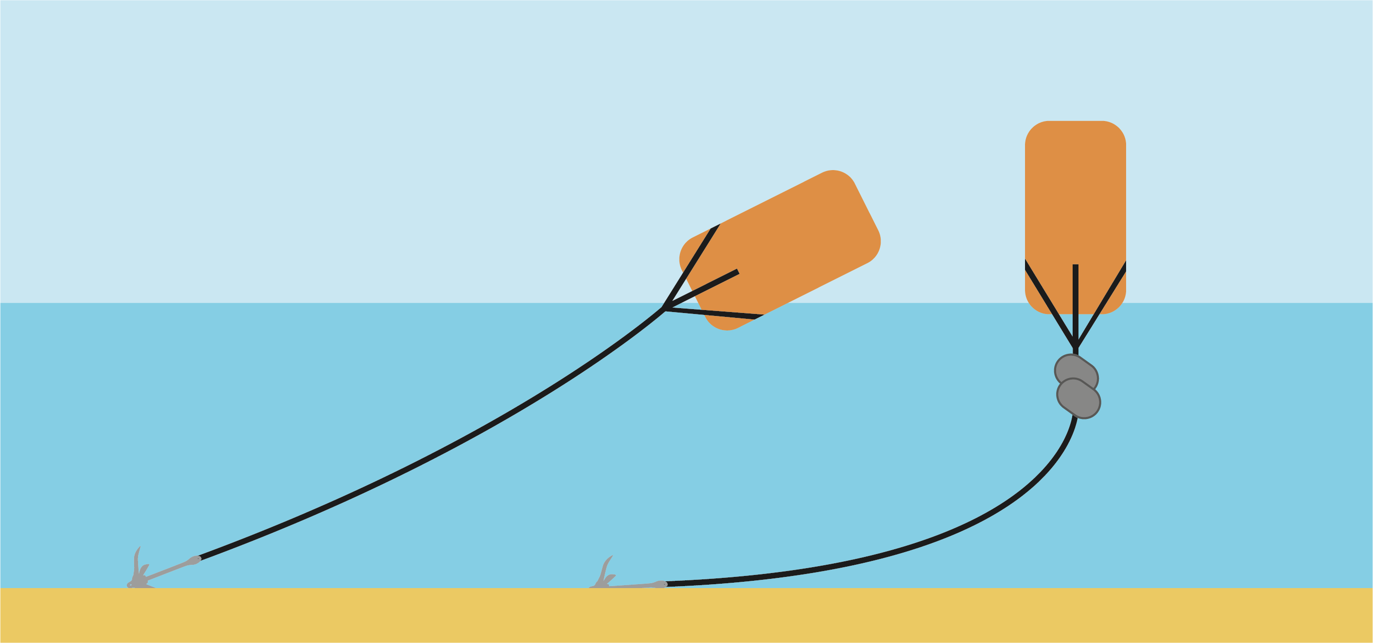 Brug gerne et pælestik til at binde ankerlinen fast til ankeret og bøjen.