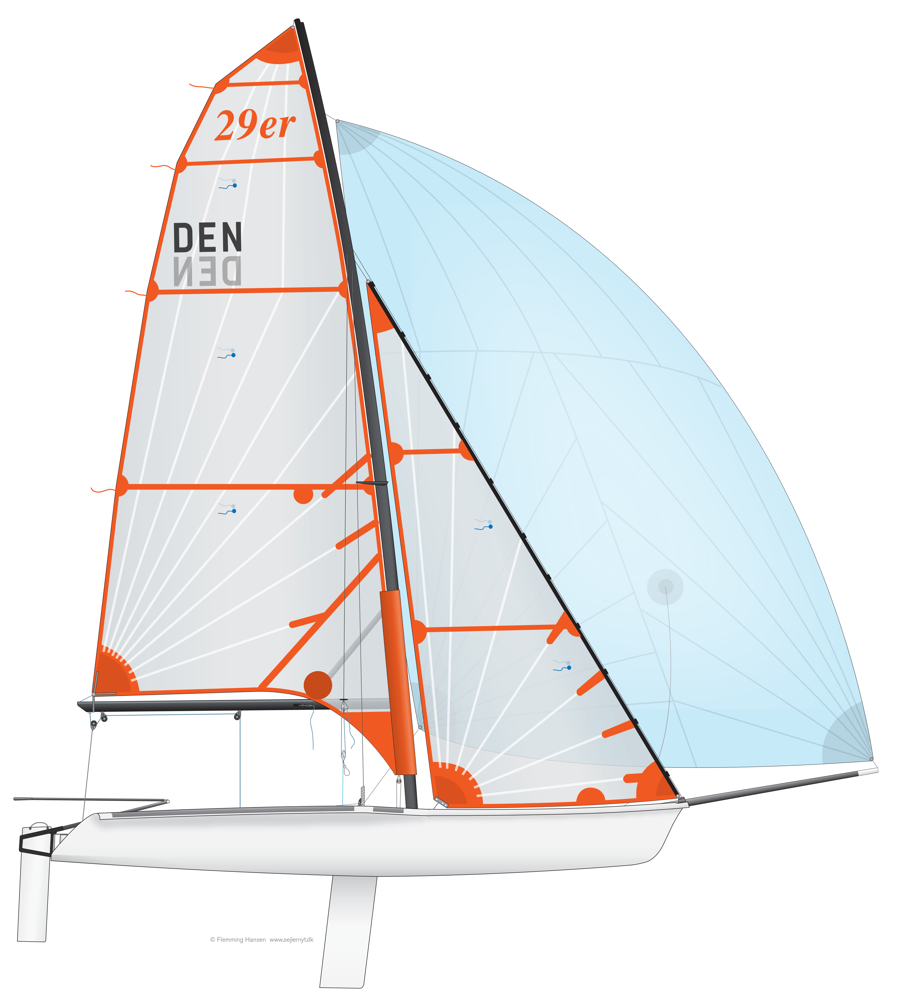 29eren er en ægte High Performance skiff-jolle - en båd med 2 personer, 1 trapez og 1 stor asymetrisk spiler.