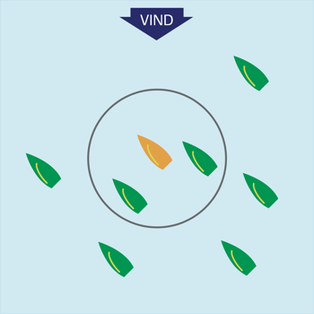 Forsøg at vinde den 'lokale kamp'. Sikker læ på luv båd – falde til fart mod læ båd.