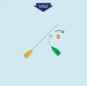 Længere væk fra mærket faldes bagom for at blive styrbord båd ved næste møde.