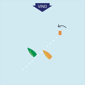 Skal du sejle med spiler efter topmærket, er det vigtigt, at grejet er klar og rigget til i den rigtige side, afhængigt af om du skal falde af eller bomme.