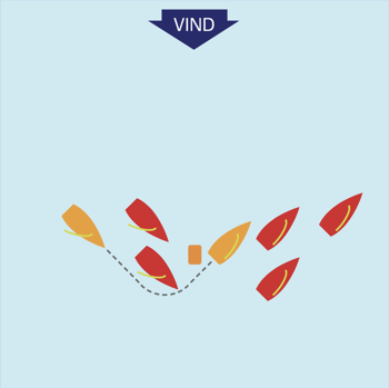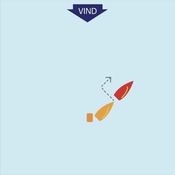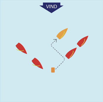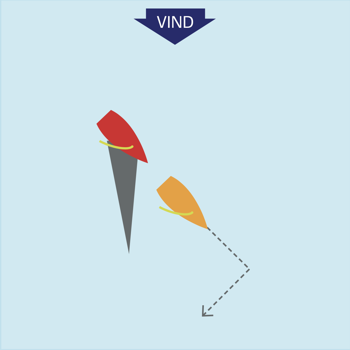 Sørg for at styre/bomme fri af vindskyggen fra den bagvedliggende båd – peg windexen.