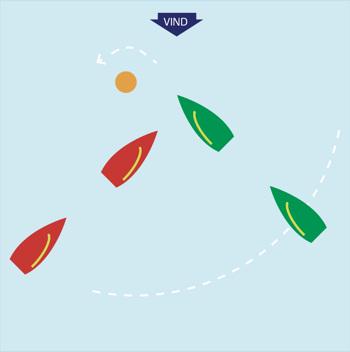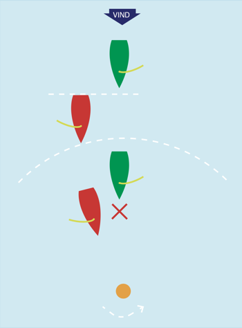 Bemærk, at dette gælder selvom rød båd sejler på bagbord halse.