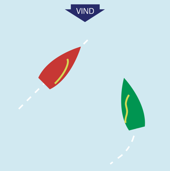 Når både er på modsatte halser, skal en bagbord halse-båd holde klar af en styrbord halse-båd.