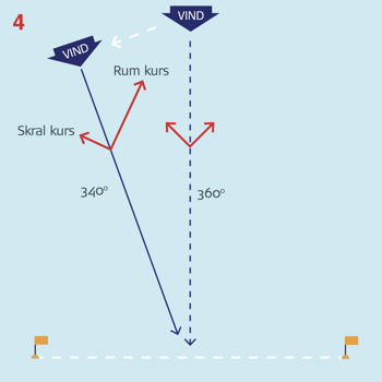 Disse kurser SKAL du have noteret dig således, at du løbende kan checke din kompaskurs – og vide om du er 'oppe' = rum kurs til mærket, eller 'nede' = skral kurs og derfor evt. bør vende.