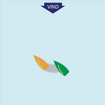 Vinden kan også have en generel drejning. I dette tilfælde 20° til venstre. Ved du det, eller kan du se det på andre både, vejrudsigt elller lignende, skal du søge ud mod vinddrejningen dvs. til venstre.