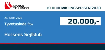 ”Horsens Sejlklub modtager Klubudviklingsprisen 2020, fordi klubben er et forbillede, som er værd at fremhæve! Horsens Sejlklub er et mønstereksempel på den bundsolide klub, som tager det lange seje træk”, siger formand i Dansk Sejlunion, Line Markert, som begrundelse for valget blandt det skarpe felt af kandidater.
