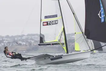 I Nacra 17 er Lin Ea Cenholt og Christian Peter Lübeck, på en samlet 12. plads før de sidste sejladser lørdag. VM-sølvvinderne har efter en tung start på stævnet gradvist fundet topniveauet. Med en aktuel 12. plads har de gode muligheder for at sejle sig i top-10 og adgang til Medal Race.