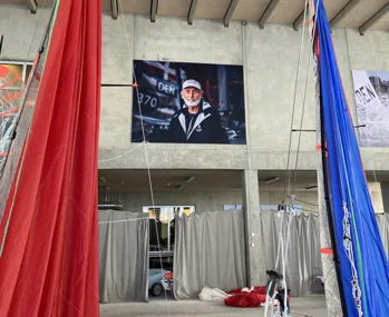 For at hylle Finn 'Beton' Jensens store indsats i det aarhusianske sejlsportsmiljø har Dansk Sejlunion ophængt et stort portræt den afgående træner i sejlsportscenteret.
