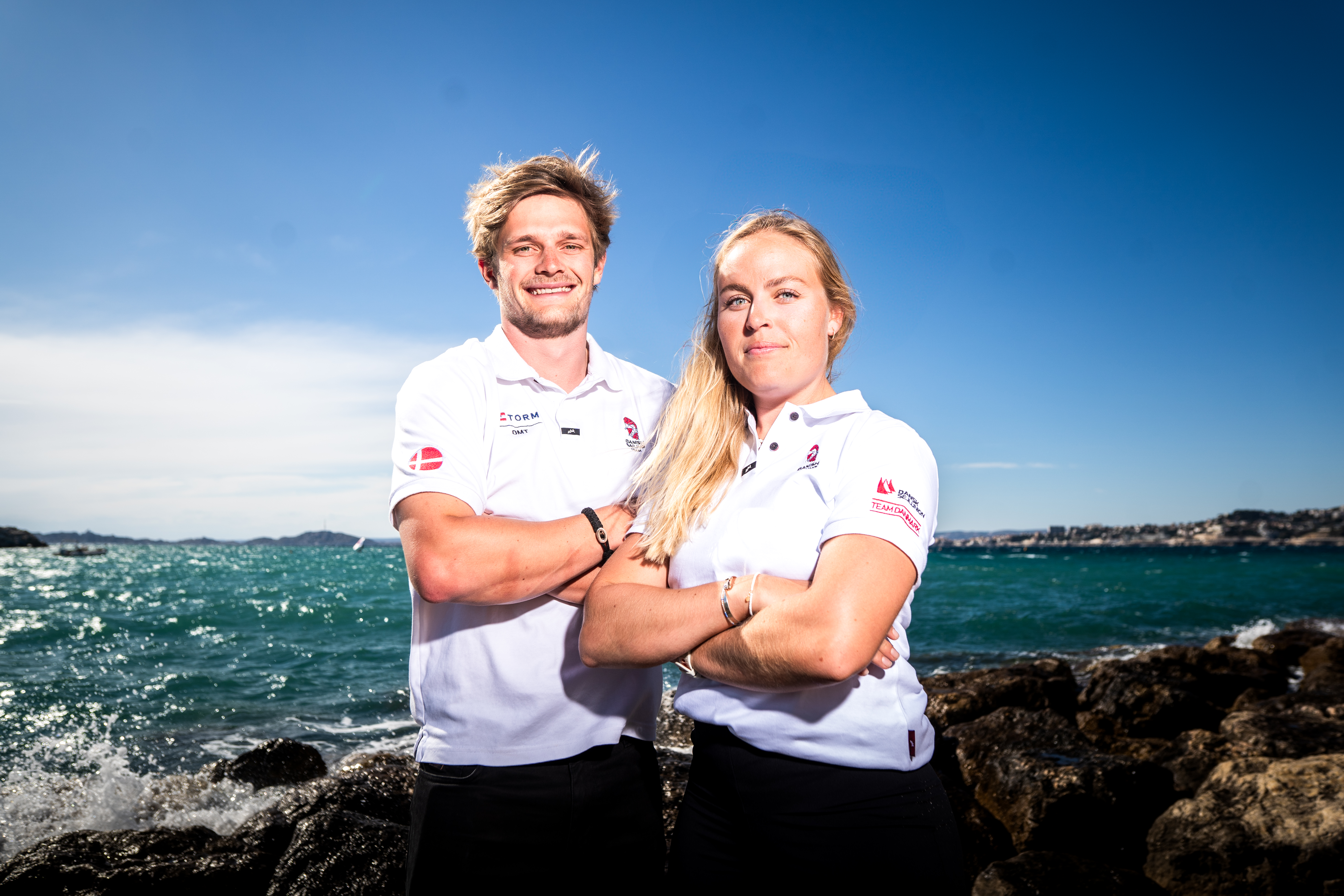 Natacha Violet Saouma-Pedersen og Mathias Bruun Borreskov fra Kongelig Dansk Yachtklub har dannet par i den foilende katamaran siden 2018.