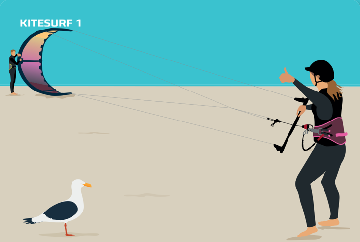On Kitesurf diploma 1, you achieve the most basic skills to move on safely with kitesurfing under conditions suitable for beginners, such as shallow water depth.