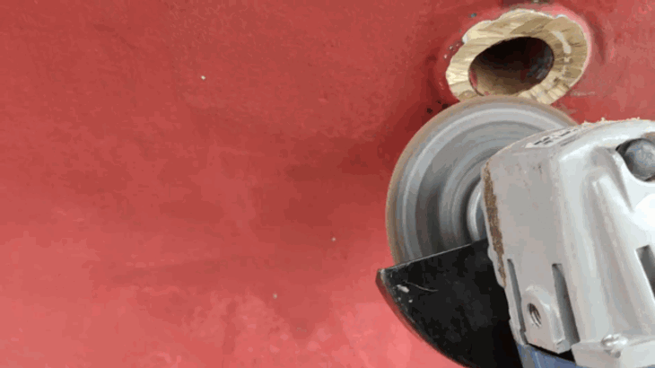 Skroggennemføringer er ikke flade, men har et lille hulrum på indersiden af kappen, hvor der er plads til tætningsfugen. Når du sliber forsigtigt, begynder du at kunne se fugen som en ring. Så snart du kan se, at du er igennem, går du videre til et nyt område.