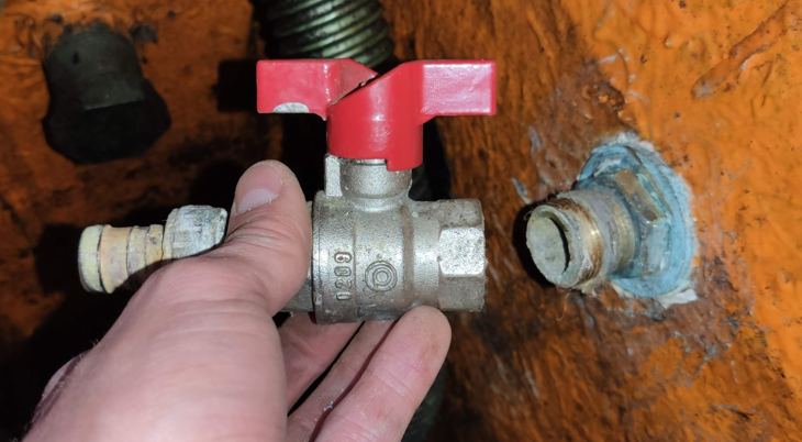 Det er ikke altid, at det går så nemt som ovenfor. Ind i mellem har en gammel ventil sat sig så meget, at den ikke er til at løsne. Det kan også være, at der ikke er plads til at komme til på indersiden. I de tilfælde er man nødt til at skære igennem søventilen på ydersiden. Det er ikke svært og kræver blot en vinkelsliber med en slibeskive.