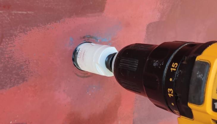 Bor hul med et kopbor i en størrelse, der passer med skroggennemføringen.